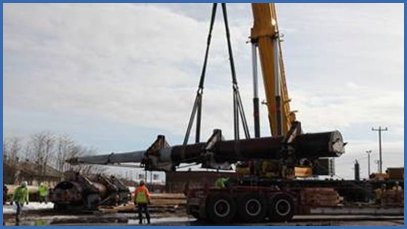 In all, three 16-inch gun barrels that were once part of the then-U.S.S. New Jersey are being loaded onto trucks today at the Norfolk Naval Shipyard in Portsmouth, Virginia, will be hoisted by crane onto railcars tomorrow, and will begin the journey to permanent homes in New Jersey and Philadelphia, including one designated for the Battleship.